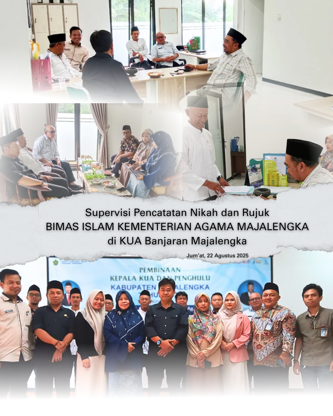 Banjaran – Seksi Bimbingan Masyarakat Islam (Bimas Islam) Kantor Kementerian Agama (Kemenag) Kabupaten Majalengka kembali melaksanakan agenda monitoring dan supervisi rutin terhadap Kantor Urusan Agama (KUA). Kali ini, kegiatan berlangsung di KUA Kecamatan Banjaran pada Jumat (22/8/2025), dipimpin langsung oleh Kepala Seksi Bimas Islam, H. Sofyan Firdaus, S.H.
